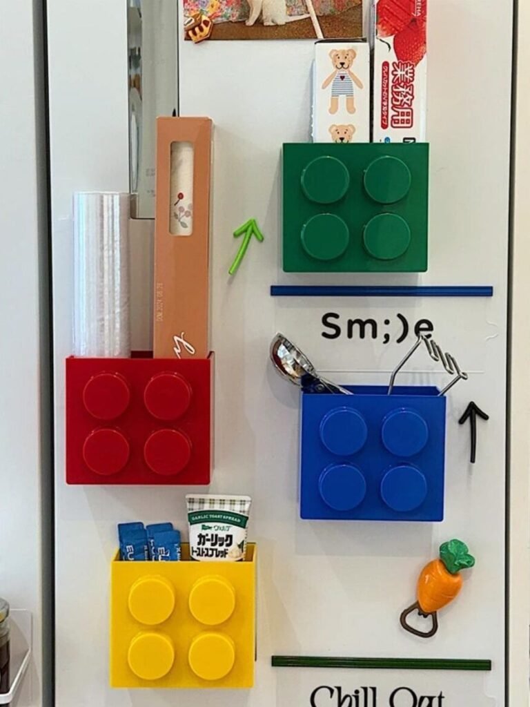 - LEGO-shaped nightstands (check IKEA hacks for DIY options).